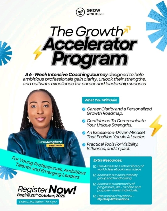 In a continent where many young professionals grapple with limited clarity about career direction and growth potential, Nigerian business strategist and career success coach Itunu Awogboro has launched an initiative, The Growth Accelerator Program, to help individuals gain focus, confidence, and leadership competence.